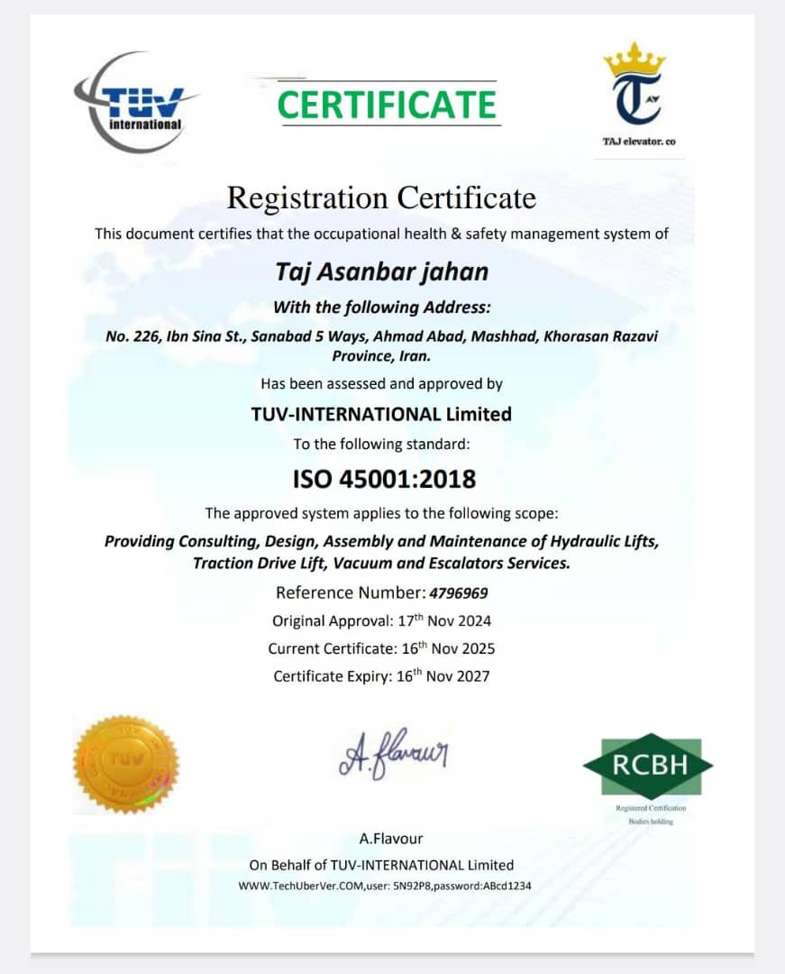 رعایت کامل استانداردهای ایمنی و کیفیت آسانسور